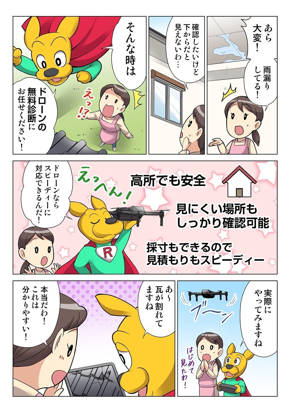 ドローン撮影によって問題点を発見できるだけでなく、採寸もできるためスピーディーな見積もりが可能です。