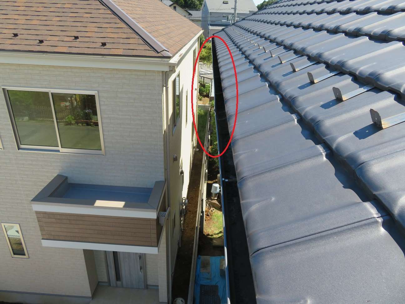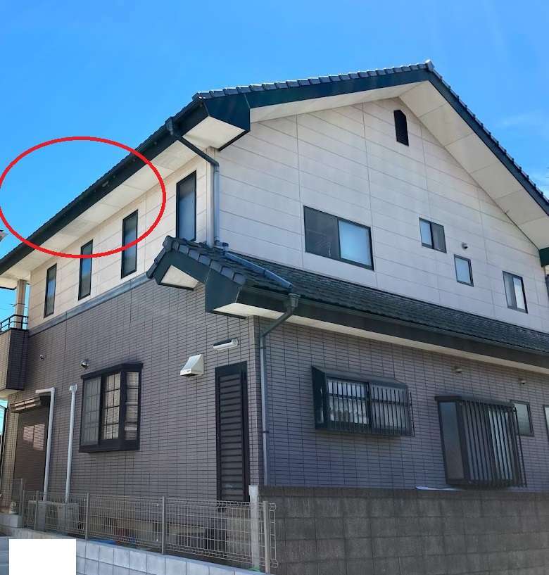 上の写真の赤丸の箇所から雨水があふれ出しているので、修理してほしいというご依頼で訪問しました。