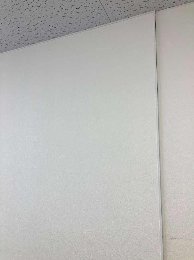 昨日張ったボードの繋ぎ目やビス穴にパテ処理して乾燥後に、指定のクロスを貼って終了です。