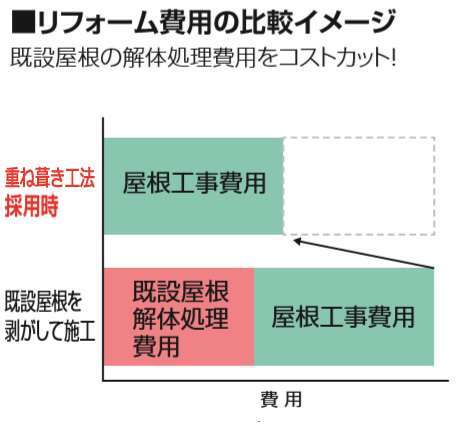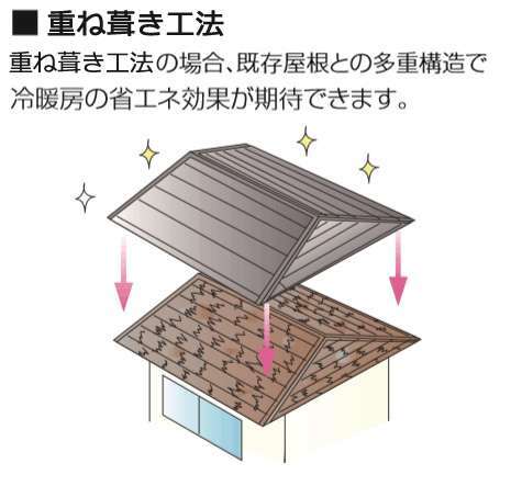既存屋根の上に防水紙(ルーフィング)+リファーナを重ねる工法。