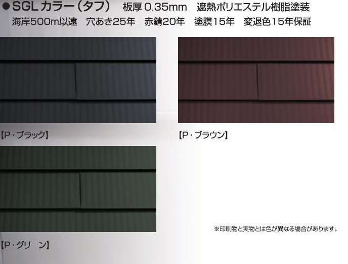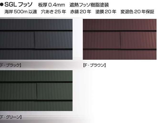 {SGLフッ素:色褪せ色落ち20年保証・SGLカラータフ:色褪せ色落ち15年保証}
