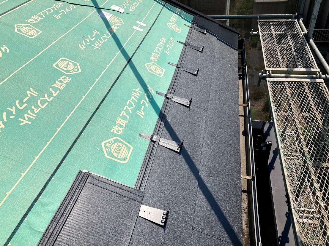 (先付けタイプの雪止め金具なので、屋根材に挟み込むように固定します)