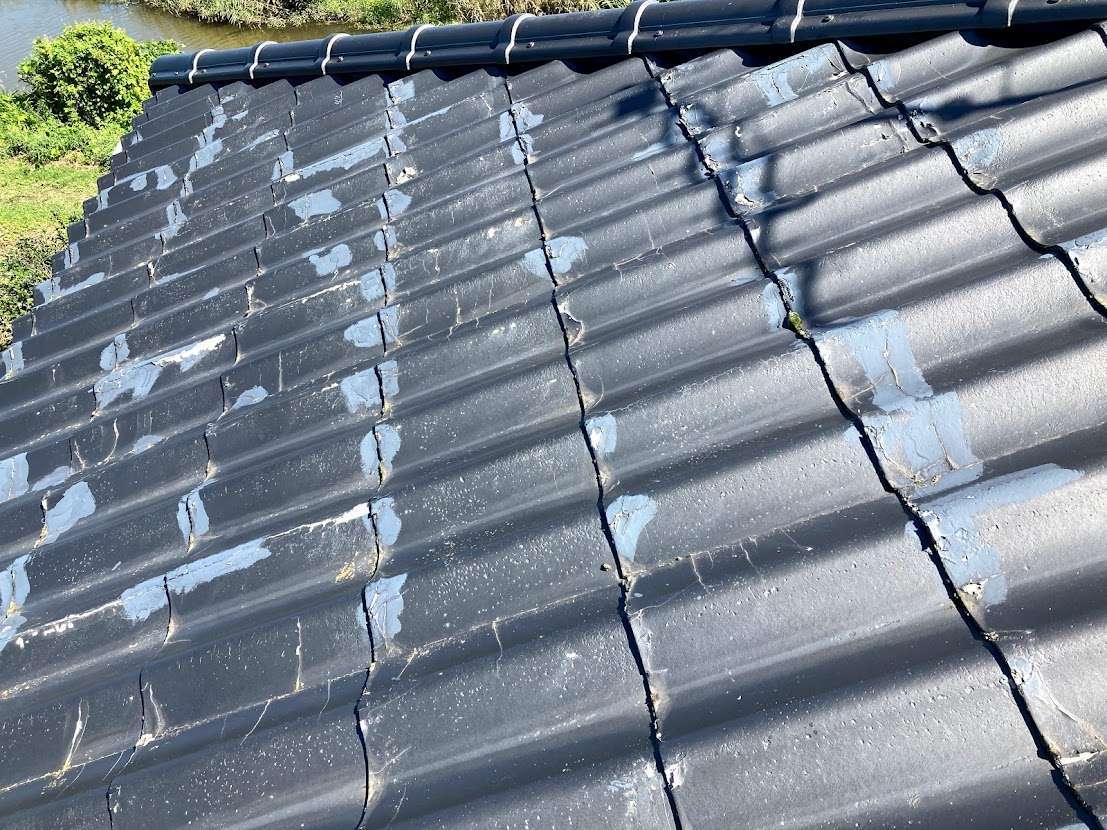 屋根のいたるところが割れており、補修も役に立っていない状況でした。