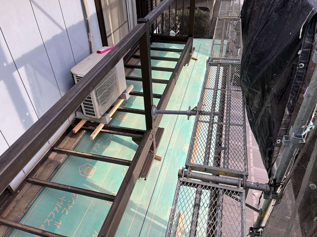 デッキ材とフェンスの一部を取り外して下地処理まで実施しました)
