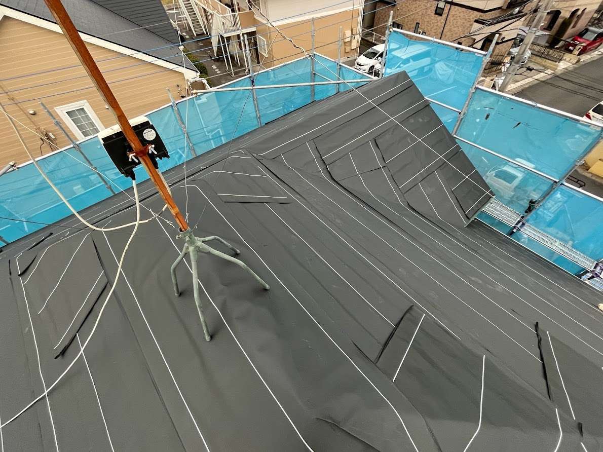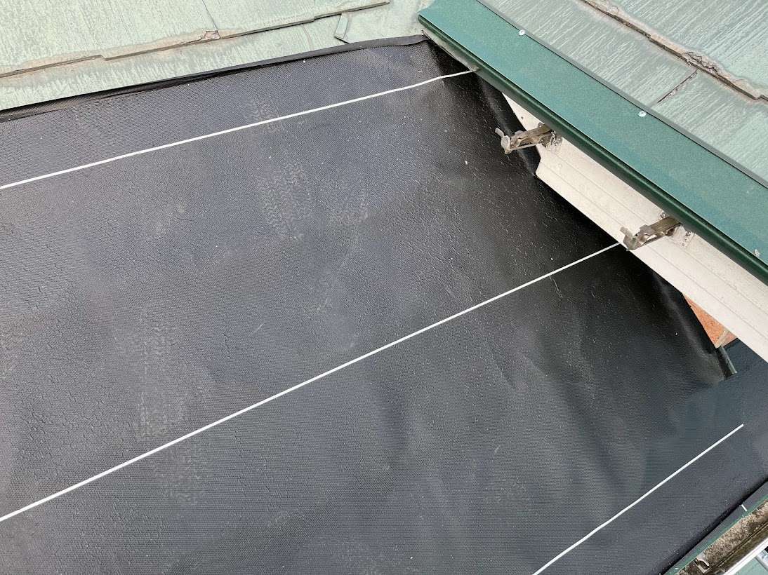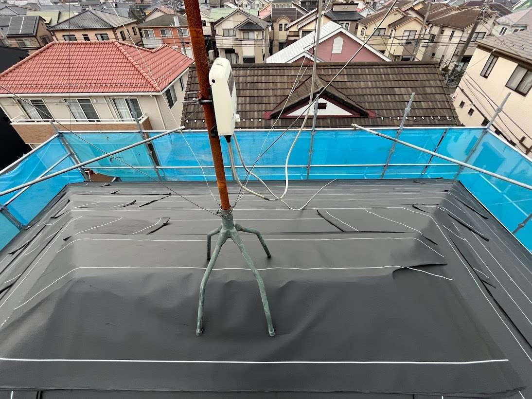 (「屋根下のルーフィン」を貼ってみました。まるでゴムシートのような質感にこれは雨漏りしないだろうなと実感しました。)