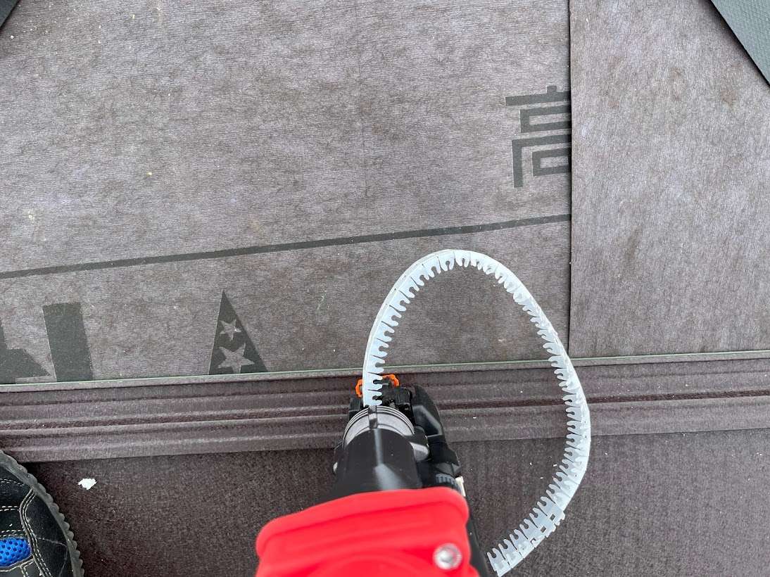 今までインパクトドライバーで専用ビスを止付けていましたが、板金➡平板スレート➡下地材木と素材が変わっていくので、ビスが”コケたり””弾かれたり”することも多く屋根材を傷つけたり、ルーフィングに穴を開けたりと補修を必要とする場面が何度かありました。