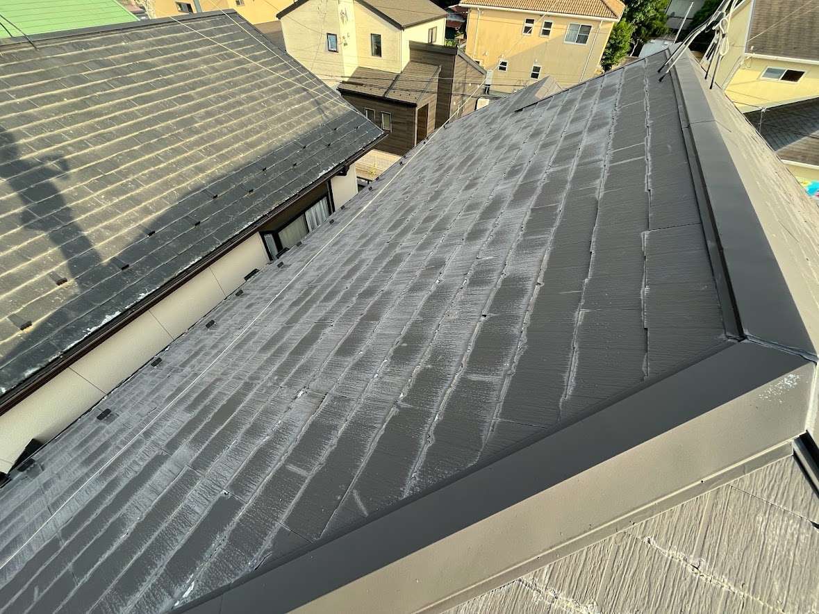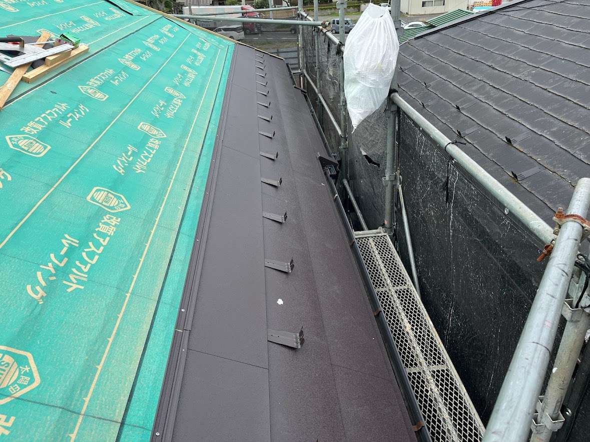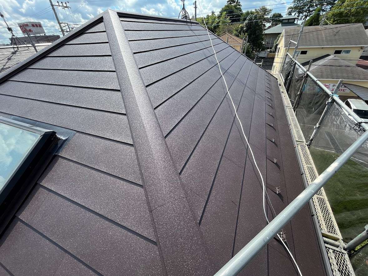 茨城県牛久市 ニチハ「パミール」葺きの屋根にガルバリウム鋼板屋根材「シルキーG2」でカバー工事を行いました。