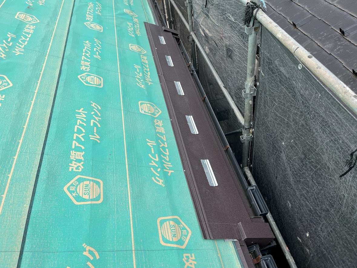 調整用ピースを左右の軒先スターターに合わせて留め付け。