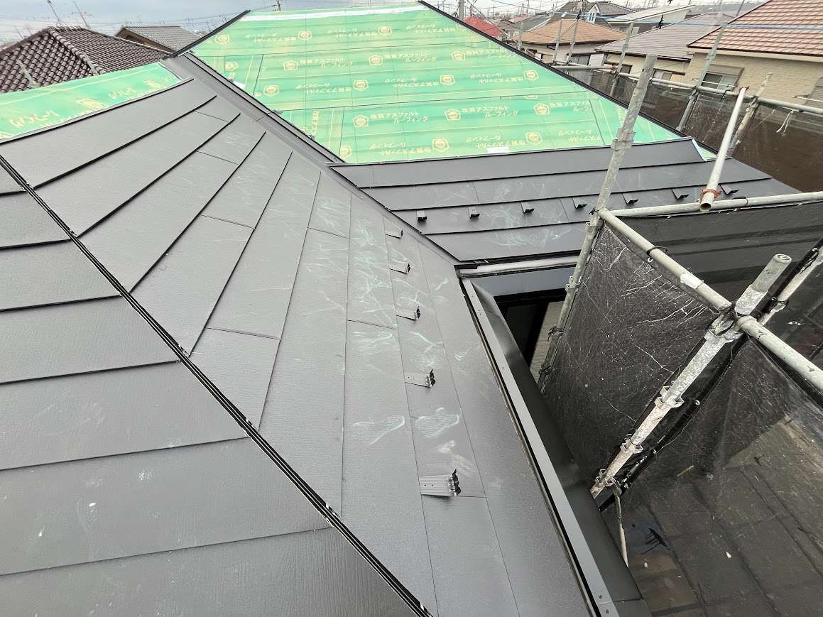 茨城県取手市 平板スレート葺き屋根へSGL鋼板製屋根材「スーパーガルテクト」にてカバー工事を行いました。