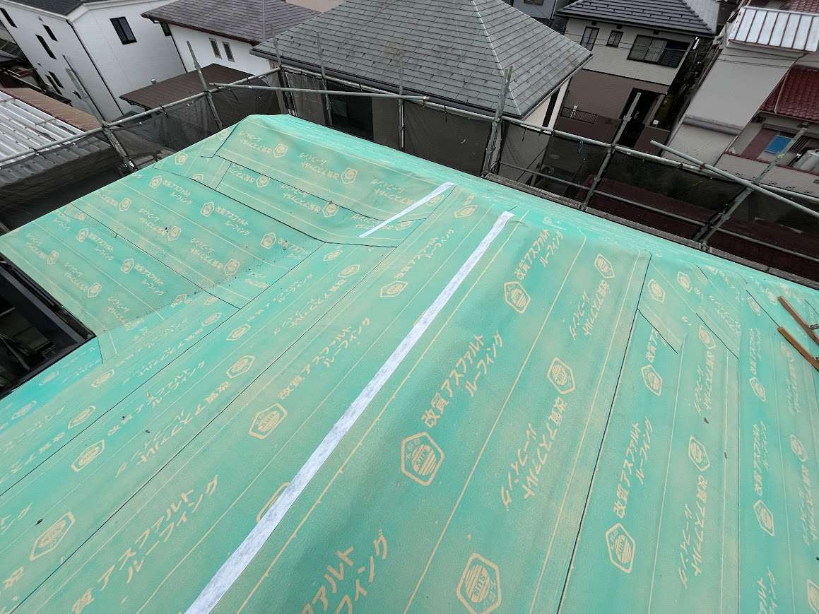 今回も粘着タイプの下葺き材「貼ってGO」を全面施工。