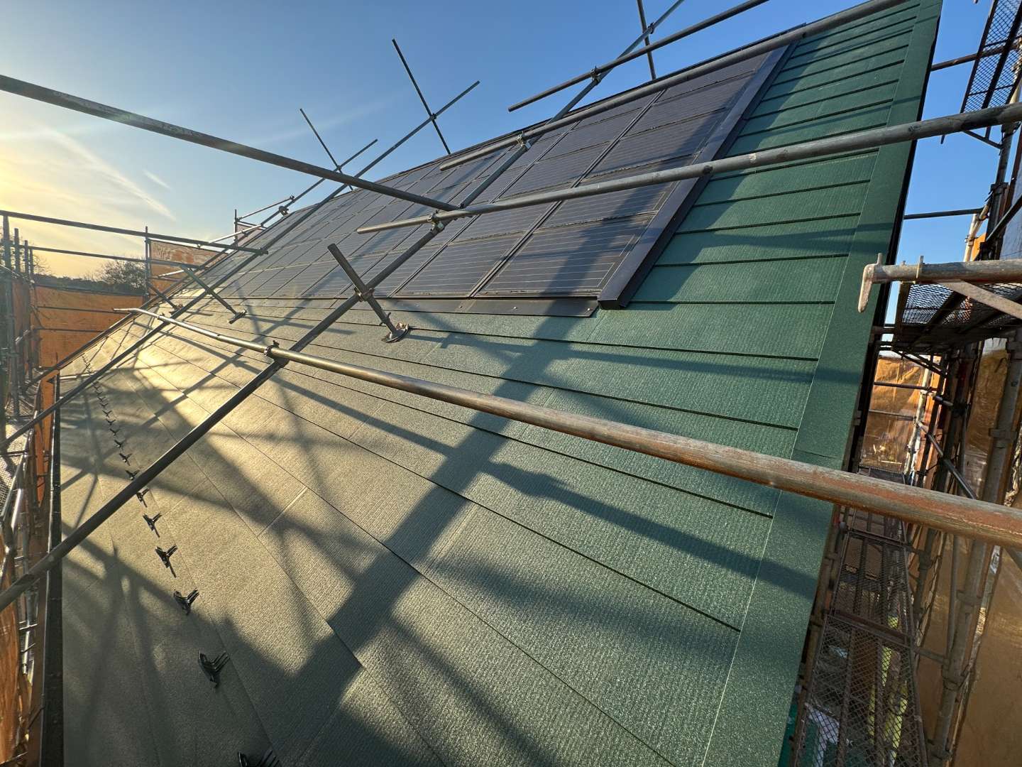 戸建て 茨城県つくば市 戸建住宅リフォーム 金属系屋根施工(ガルバリウム鋼板) 太陽光発電 屋根カバー工法 屋根工事 茨城県つくば市 屋根カバー工事「シルキーG2」 取引先塗装工事会社の依頼で茨城県つくば市の戸建て住宅の屋根カバー工事を行いました。屋根材:福泉工業「シルキーG2」 竣工日 2025.12.1 場所 茨城県つくば市 施工内容 屋根カバー工事「シルキーG2」グリーン施工 施工者 有限会社ルーフトップス 前の施工事例 戸建て 茨城県牛久市 屋根カバー工事「スーパーガルテクト」 次の施工事例 戸建て 茨城県取手市 物置小屋建て替え